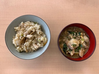 〈食育応援活動〉1月28日に塩漬け大根の葉と豚肉のチャーハンをいただきました。